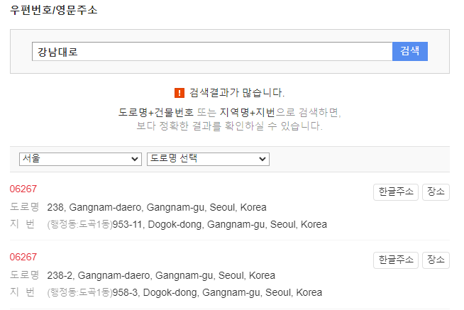 - 포털 사이트 : 포털 사이트에서 우편번호 검색 서비스를 제공합니다.